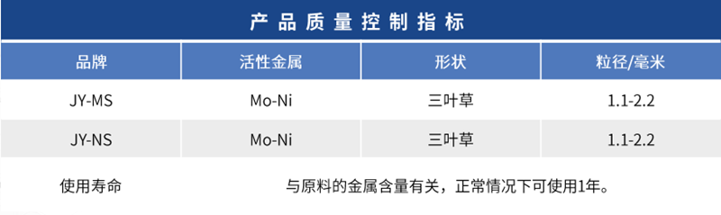 JY-MS和NS是重油加氫脫硫脫氮催化劑。適用于重油和其他劣質餾分油的加氫處理工藝,其主要作用是進一步去除原油中的雜質硫,并適當去除氮和殘碳。